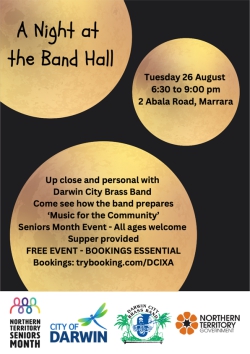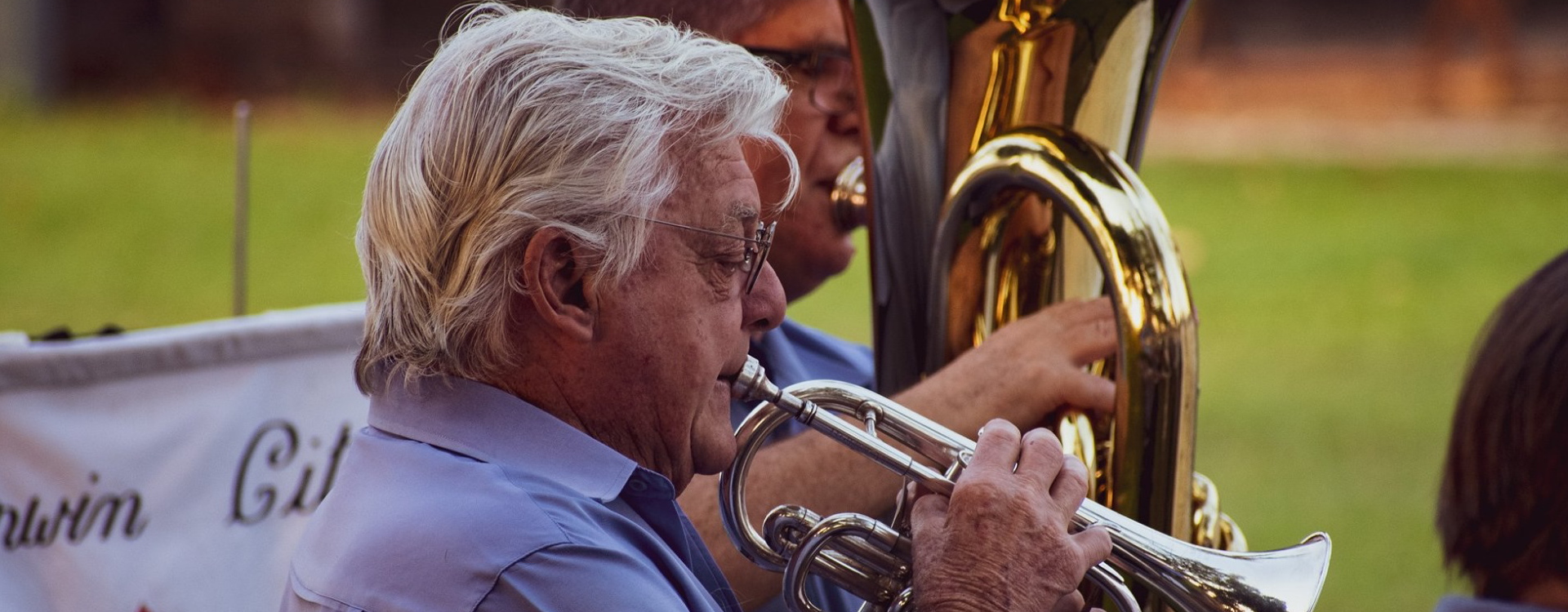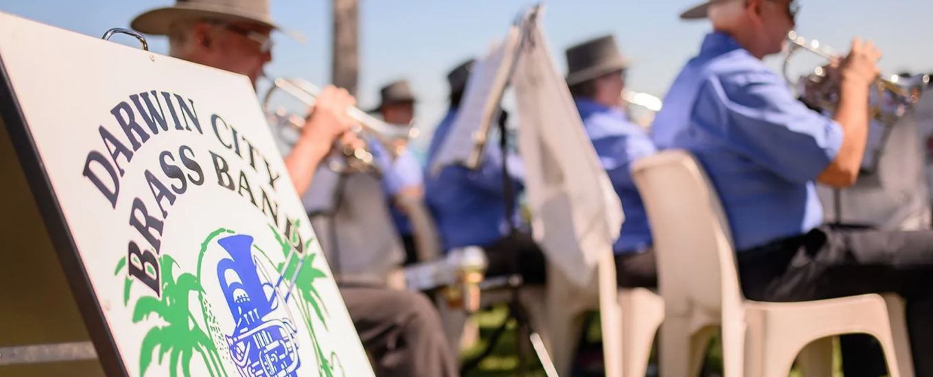 Brass band history in the Northern Territory dates back to 1895 in the early settlement of Palmerston. Today’s Darwin City Brass Band has been performing continuously since 1981 and is made up of over 30 dedicated volunteer musicians.